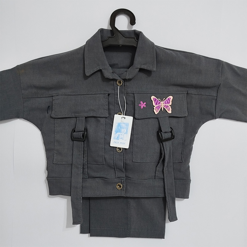 کت و شلوار کتان دخترانه سگک دار (8799)